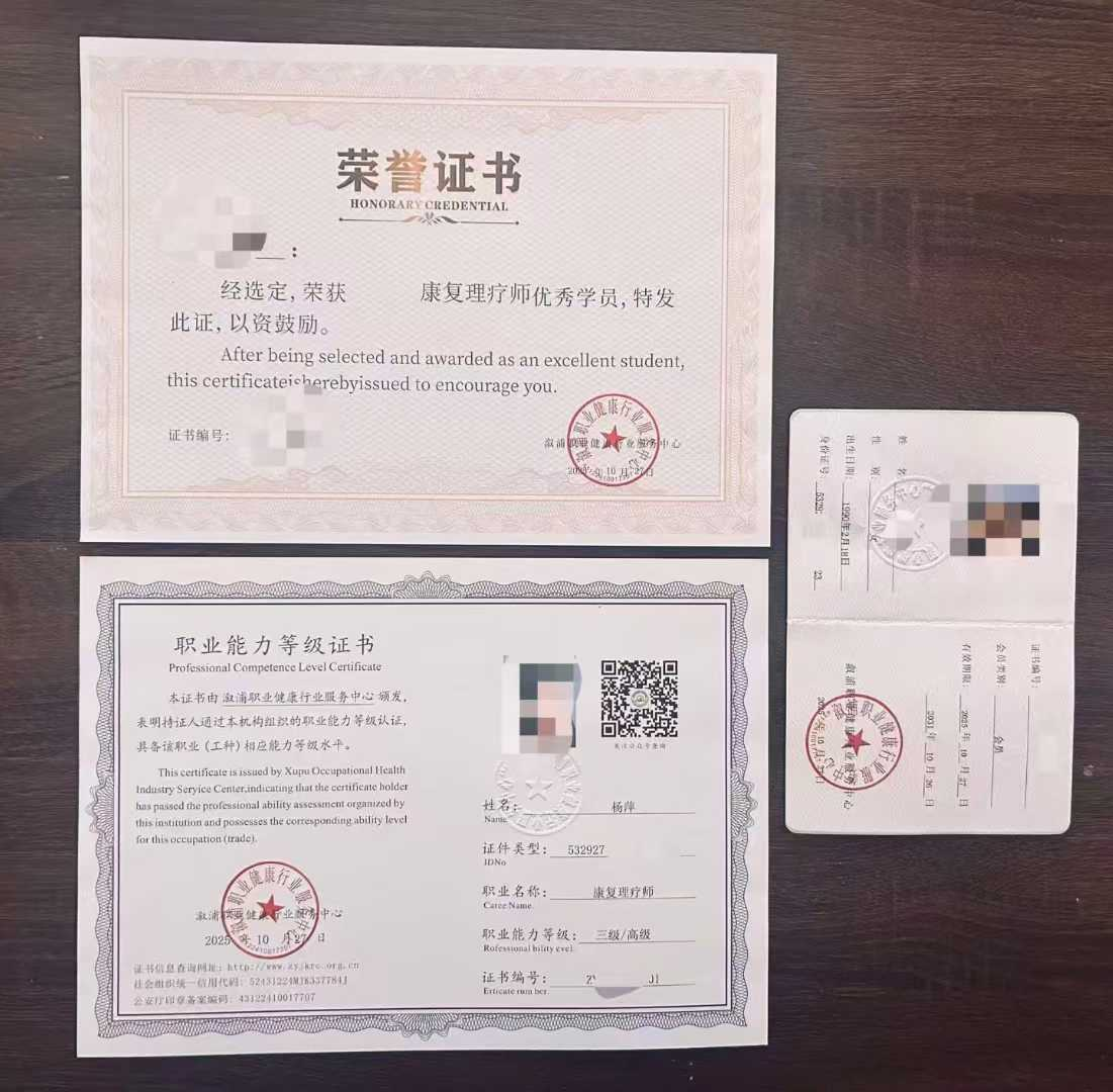 证书+会员+荣誉 三证,通过扫码证书二维码关注公众号在线查询信息