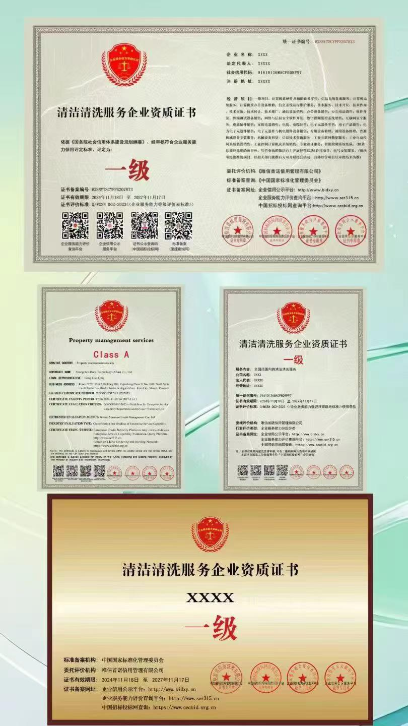 委托评价机构:《国信中诚(北京)认证有限公司》标准备案查询:《中国国家标准化管理委员会》企业信用等级证书; 企业资信等级证书; 诚信经营示范企业; 诚信企业家证书;诚信供应商 招投标信用等级证书; 质量服务诚信企业; 重服务守信用企业;重质量守信用企业;重合同守信用企业;AAA级信用企业;1、全国诚信企业信息服务平台:www.315ccc.cn2、招标与采购网:www.gc-zb.com3、中