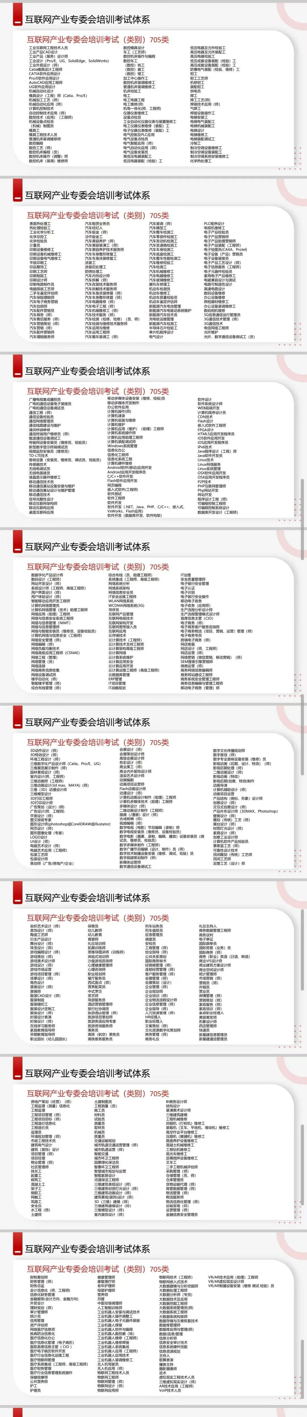 中国通信工业协会互联网产业专业委员会职业能力评价 705类专业,查询网址:http://www.cciaiic.org.cn/